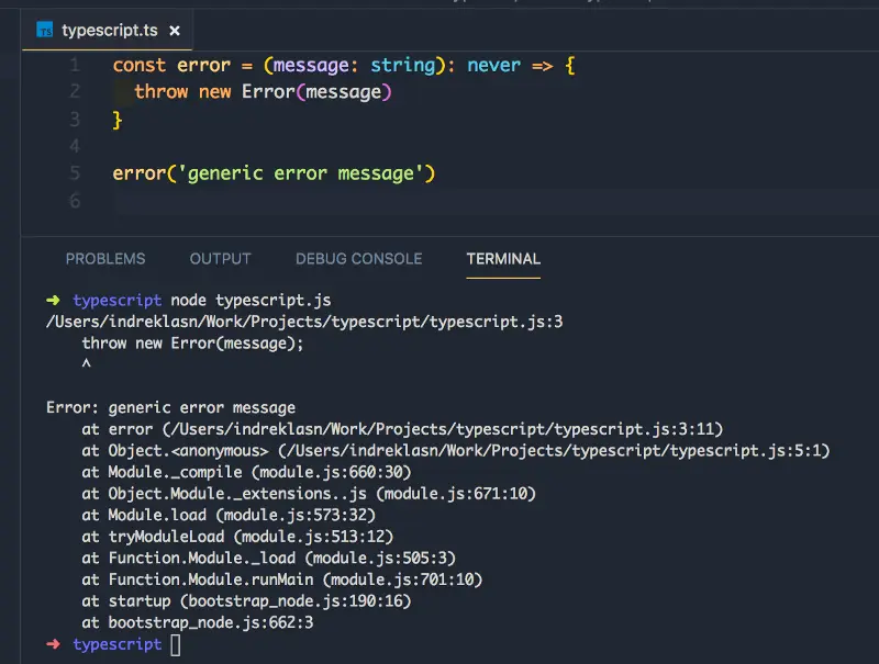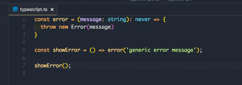 因为我们推断返回值的类型是 never,所以我们声明返回值的类型为 never,而不是 void。