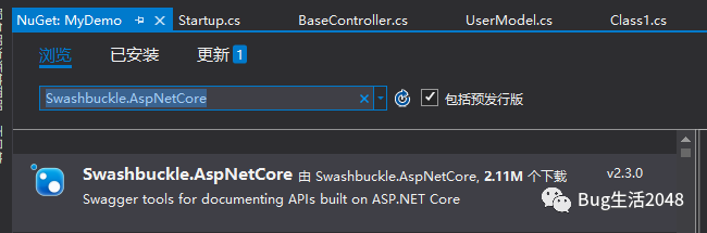 首先通过NuGet 加载依赖包Swashbuckle.AspNetCore