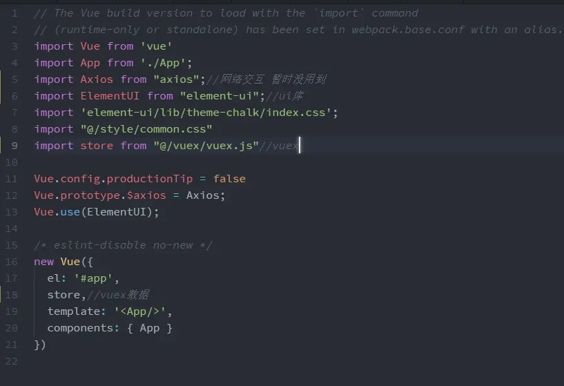 在main.js文件中基本上是引入了项目所需要的模块