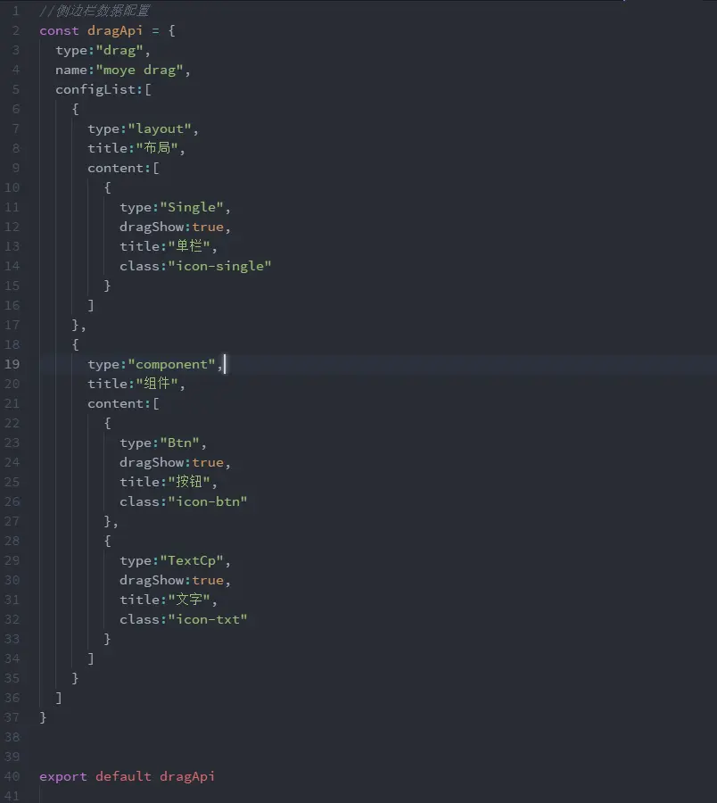 dragapi.js左侧菜单栏的数据配置
