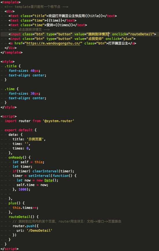 图是demo中首页的代码,乍一看这TM不就是vue1的语法吗?
