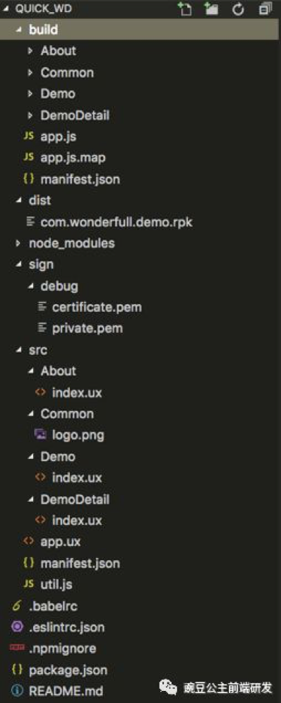 - dist目录:编译后生成的rpk格式的程序包,可以直接传输到手机上安装使用;