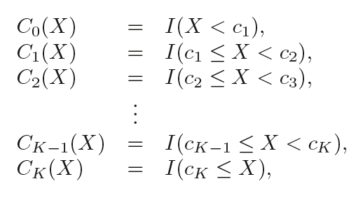换句话说,假设我们在X范围内设置了K个节点:C1,C2,...,CK,然后构建K+1个新变量: