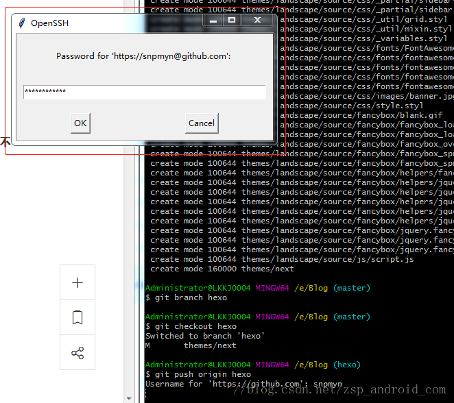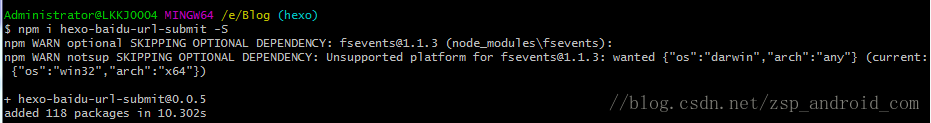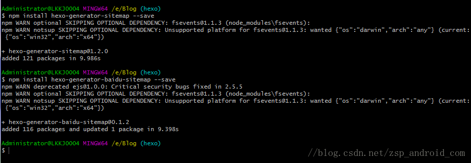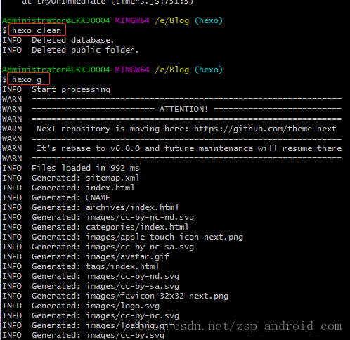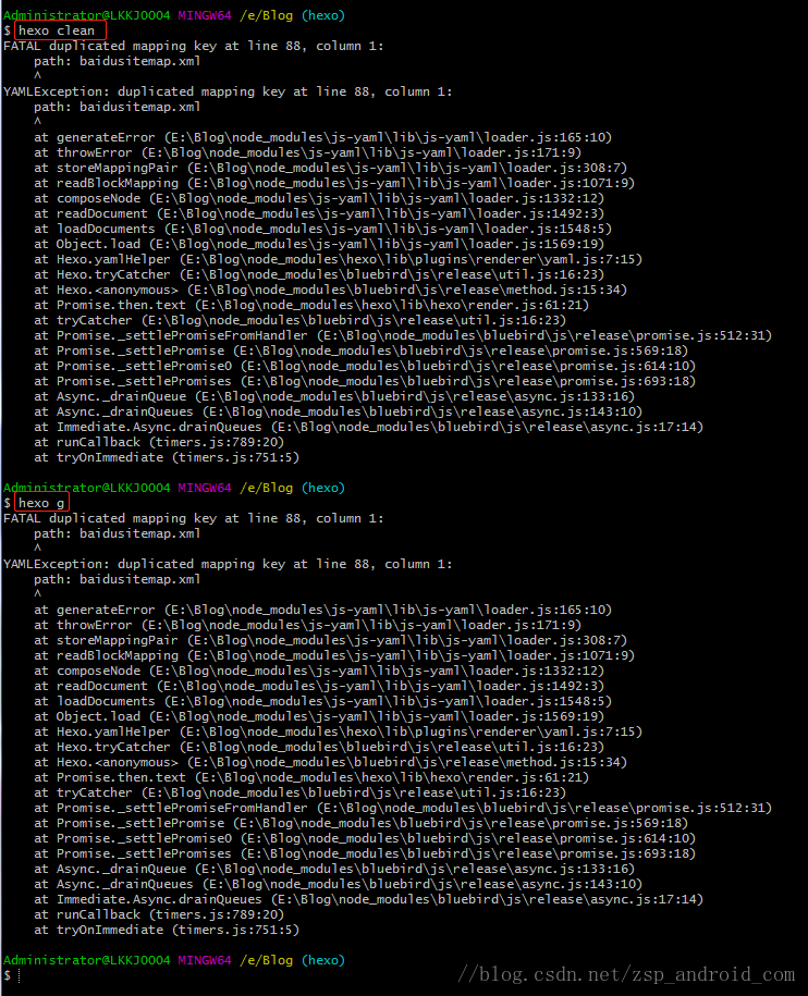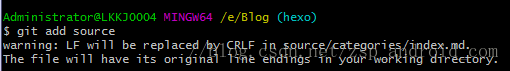 Administrator@LKKJ0004 MINGW64 /e/Blog (hexo)