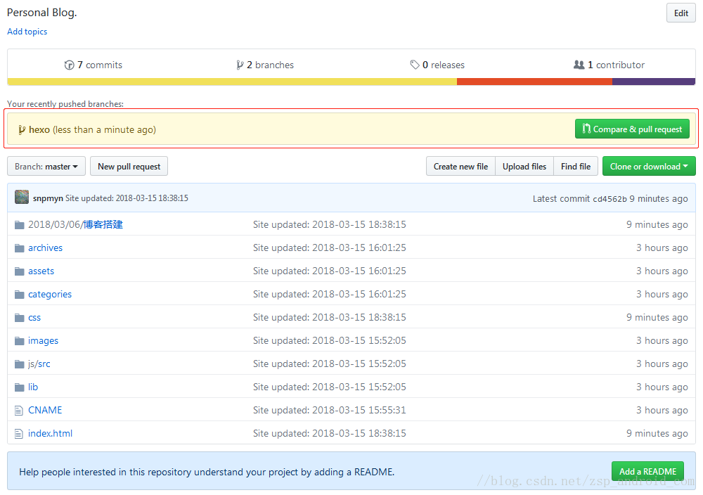 $ git push origin hexo