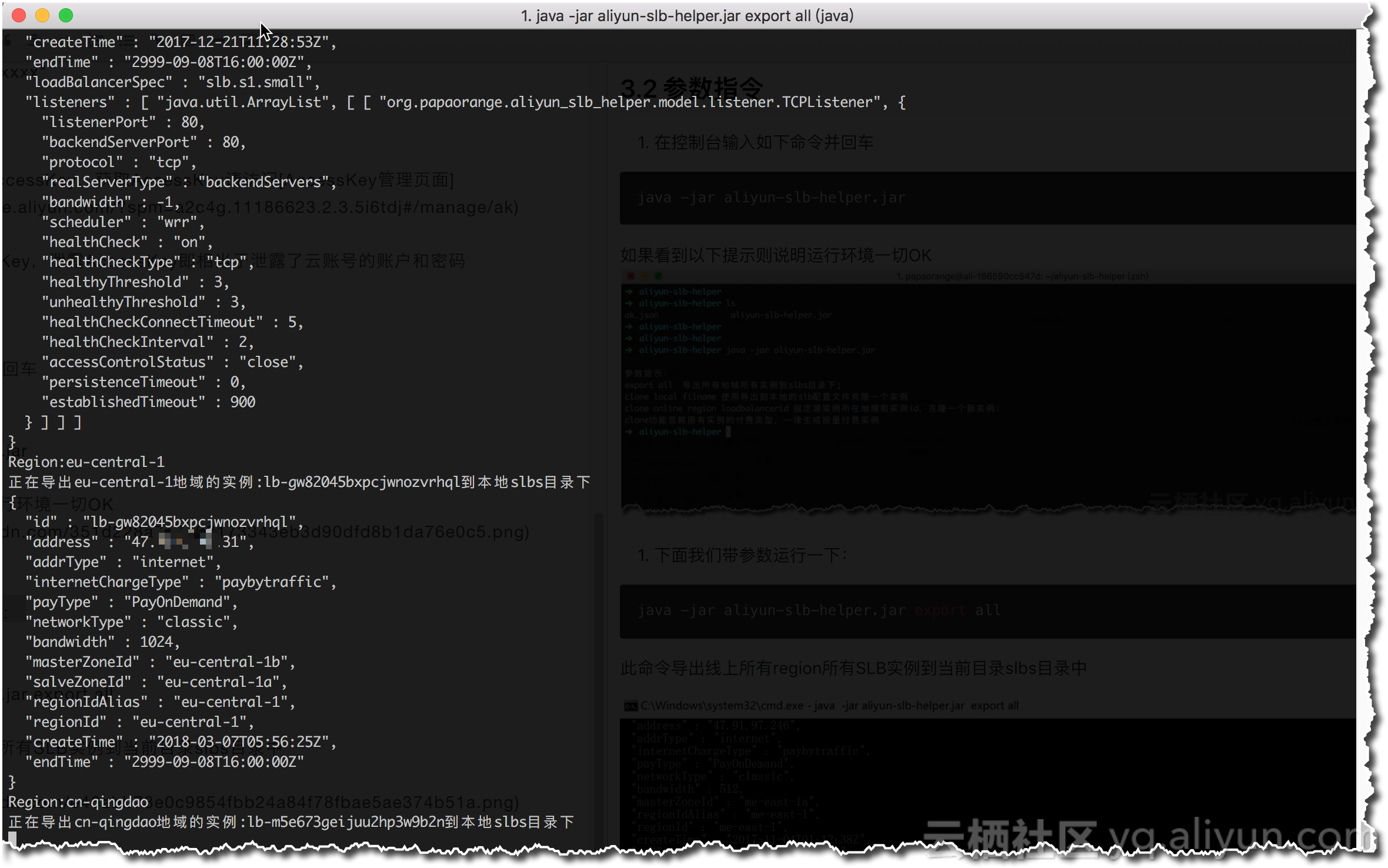 此命令导出线上所有region所有SLB实例到当前目录slbs目录中,运行截图如下