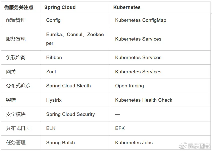 Spring Cloud与Kubernetes比较。