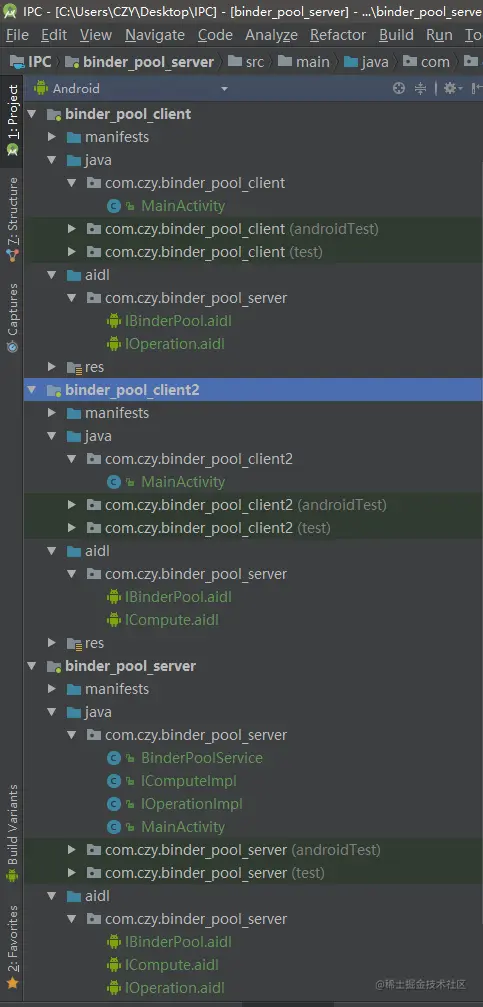 本客户端请求服务端进行加法操作,因此需要把 IOperation.aidl 文件和 IBinderPool.aidl 文件拷贝过来