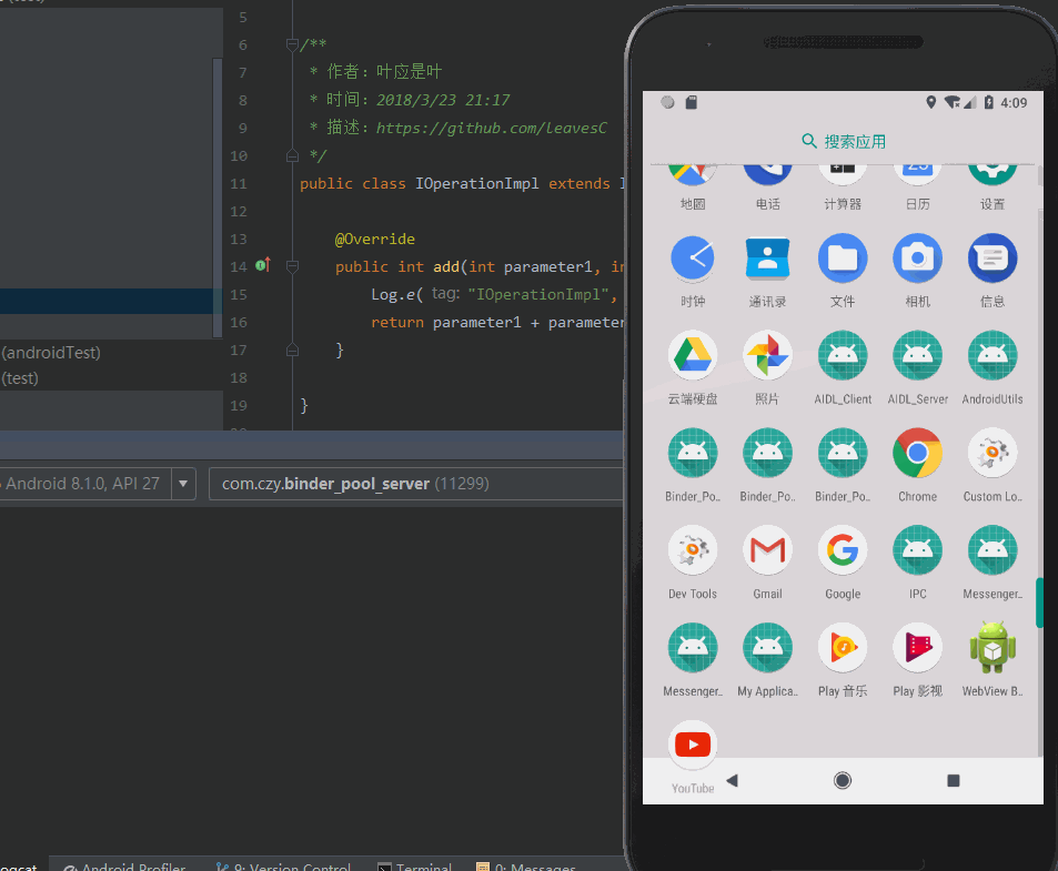 这样,以后每增加一个客户端,就可以再为其指定一个唯一标识,然后在服务端中返回对应的 Binder 对象即可,从而避免了创建多个 Service 的情况,极大的提高了开发效率