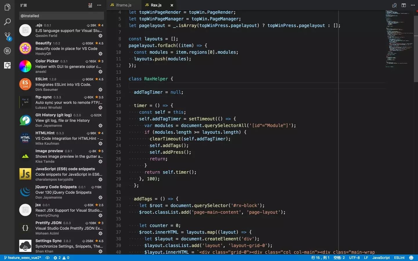 VSCode 刚出来的时候并不是特别看好,因为 Sublime 和 Atom 的插件生态已经做起来了,成千上万个可供选择,VSC 从零开始,除了自身提供的几个内置插件外几乎没有多余的选择,没想到短短一年多的时间,发展如此快,下图是我在其他平台也比较常用的几个插件,我安装了挺多,大概二三十个。