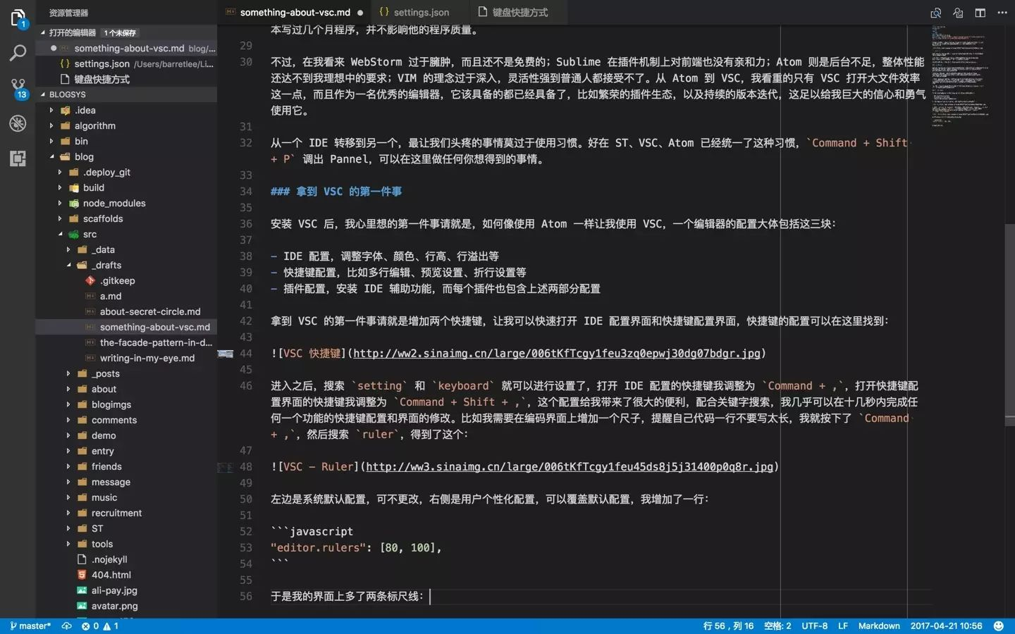 拿到 VSC 的第一件事请就是增加了两个快捷键,让我可以快速打开 IDE 配置界面和快捷键配置界面,快捷键的配置可以在这里找到: