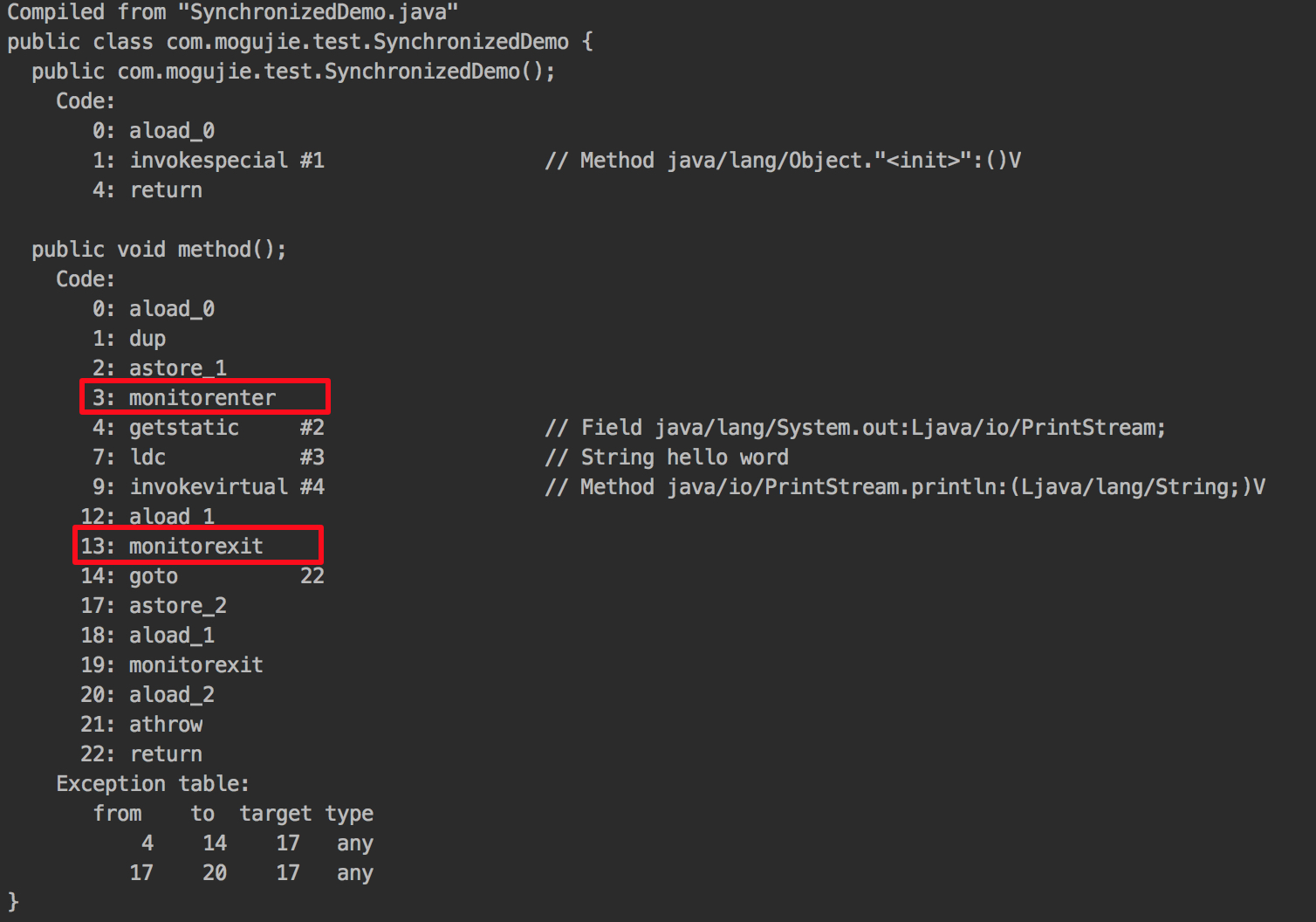 从上面分析可以看出,Synchronized的语义底层是通过一个monitor的对象来完成,其实wait/notify等方法也依赖于monitor对象,这就是为什么只有在同步的块或者方法中才能调用wait/notify等方法,否则会抛出java.lang.IllegalMonitorStateException的异常的原因。