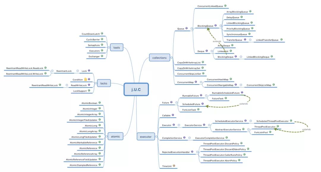 关于并发的学习,可以从JDK提供的并发包为核心开始,许多其他的类和封装都是对其进行扩展或者补充,我们来看一下Java并发包(java.util.concurrent包,简称J.U.C)的构成:
