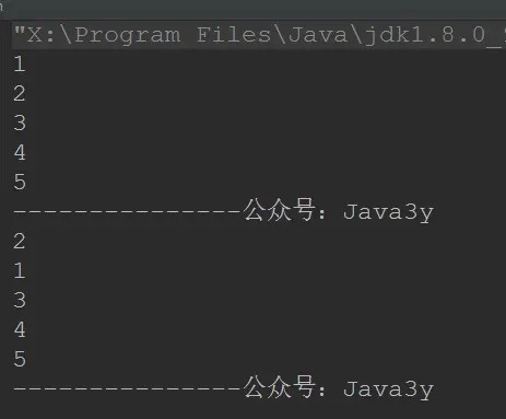 System.out.println("---------------公众号:Java3y");