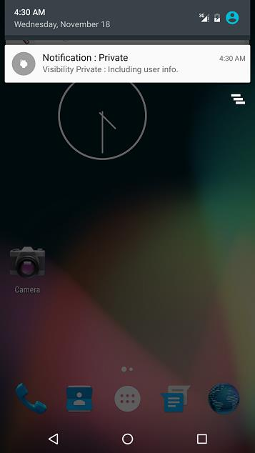 在 Android 5.0(API Level 21)中增强了通知的通信功能,即使在屏幕锁定时也可以通过通知显示消息,具体取决于用户和应用设置。 但是,不正确地使用通知,会导致私人信息(只应向最终用户自己显示)可能会被第三方看到。 出于这个原因,必须谨慎地注意隐私和安全性来实现此功能。