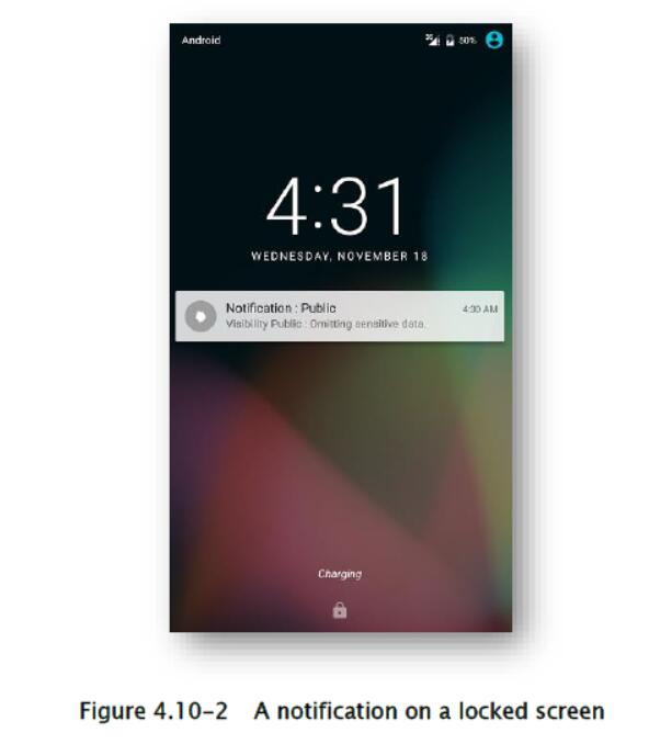 当传递可见性为私有的信息时,最好同时创建一个额外的通知,用于公开展示,它的可见性为公开;这是为了限制锁定屏幕上显示的信息。