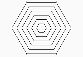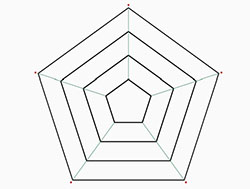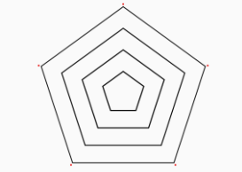 绘制正五边形同时描绘最外围的点,确定分为4层,半径 / 层数 =每层之间的间距,从最里层开始画正五边形,每层第一个点位于中心点正上方