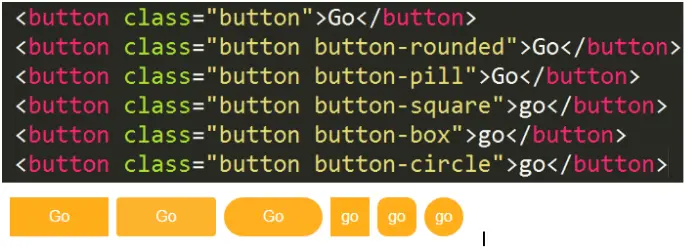 》形状:长方、圆角长方、正方 、圆角正方 、圆(默认,button-rounded, button-pill,button-square,button-box,button-circle)