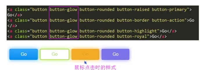 》颜色:灰、蓝、绿、橙、红、紫、黑(默认、button-primary、button-action、button-highlight、button-caution、button-royal,button-inverse )