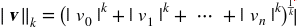 更一般的,包含n个元素的矢量v的ℓk范数,定义成