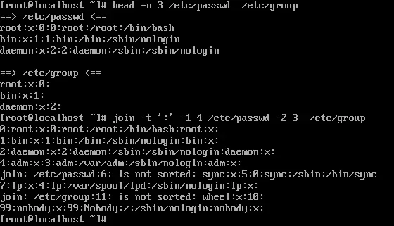 join [-ti12] file1 file2 处理两个文件的数据,将两个文件有相同数据的那一行加在一起