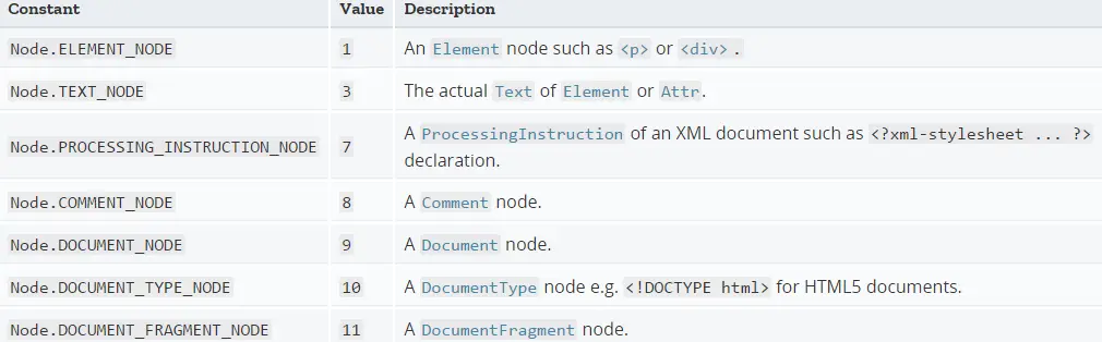 这让我想到了 vue.js 中出现多次的代码:if (child.nodeType === 3) { ... } 其实就是判断当前节点是否为文本节点。