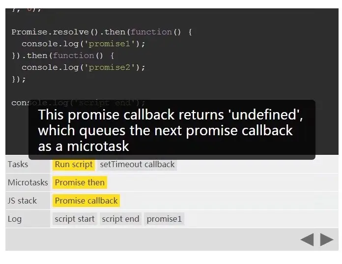 由于promise的回调函数中返回'undefined'于是将下一个promise 进入到微任务中.