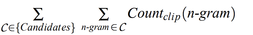 表示取n-gram在翻译译文和参考译文中出现的最小次数,比如上面的1-gram出现的最小次数是2.