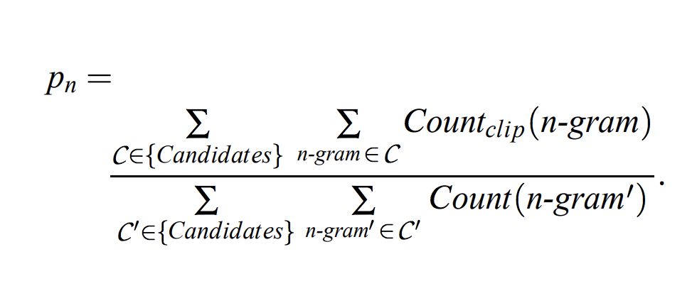 是时候拿出论文中的计算各阶N-gram的精度计算公式: