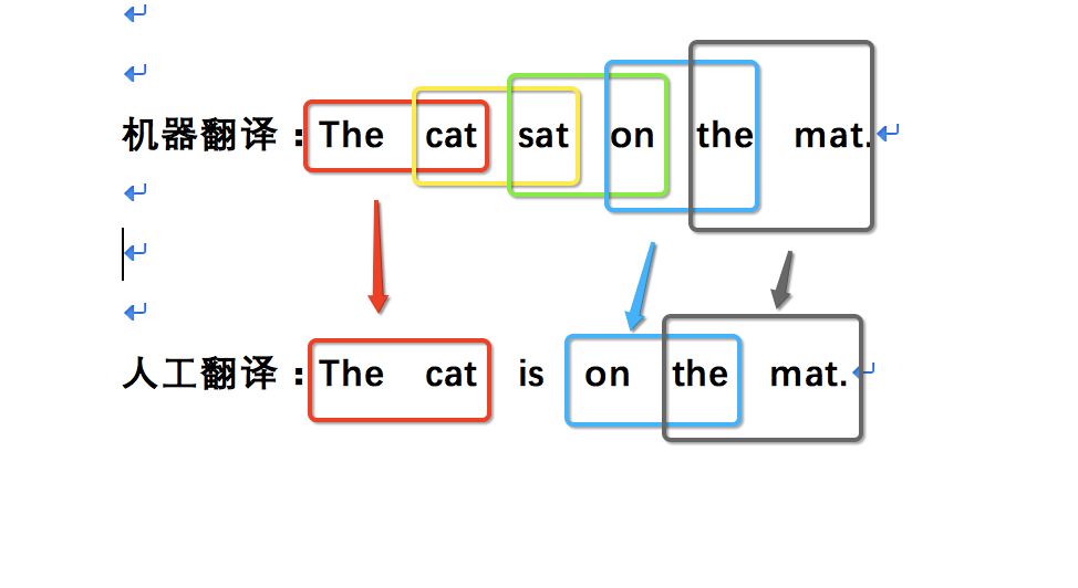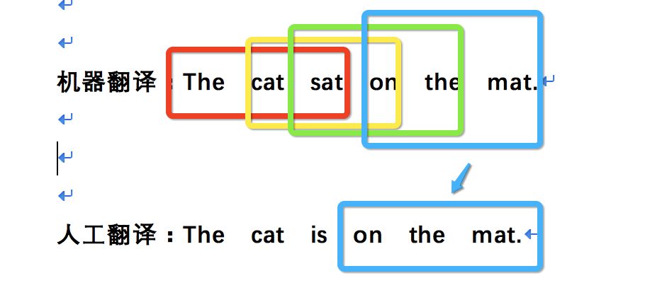 经过上面的举例你应该很清楚n-gram是怎么计算了吧。一般情况1-gram可以代表原文有多少词被单独翻译出来,可以反映译文的充分性,2-gram以上可以反映译文的流畅性,它的值越高说明可读性越好。这两个指标是能够跟人工评价对标的。