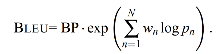 经过上面的各种改进,BLEU最终的计算公式如下: