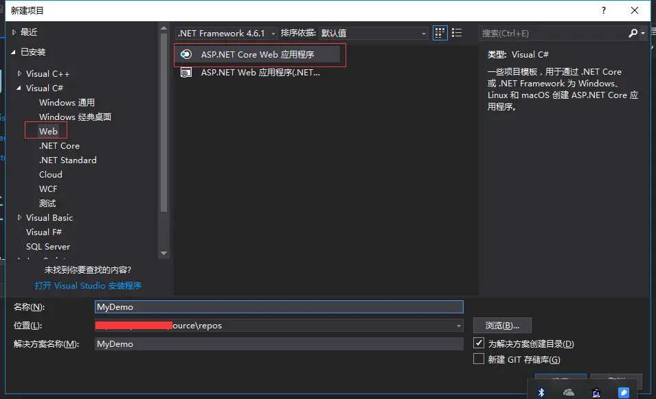 首先打开vs2017新建项目,选择ASP.NET Core Web应用程序