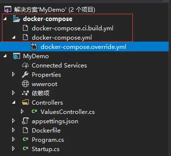点击确定后项目开始创建,项目中会产生一个docker-compose,这里面就是启动程序相关的docker命令。
