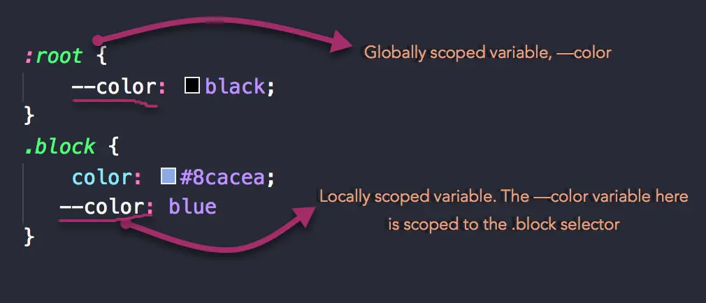 原生 CSS 变量有些不同,你需要通过 var() 函数来引用变量。
