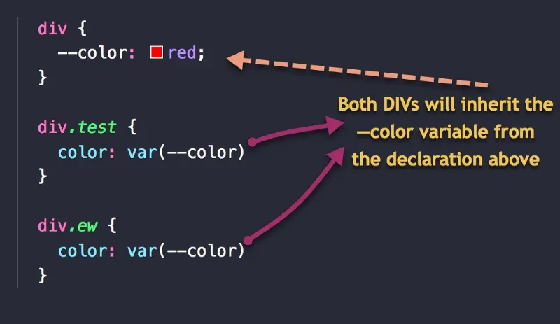 请记住,在 CSS 中,以两个横线开头的“属性”都是 CSS 变量,比如 --color