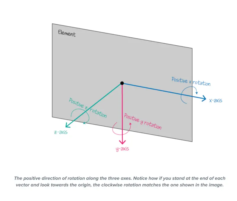 激活三维空间后,元素具有了 x,y,z 轴。rotateY 就是元素围绕 Y 平面旋转。