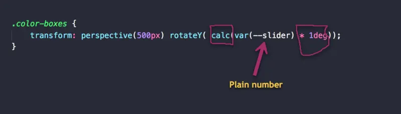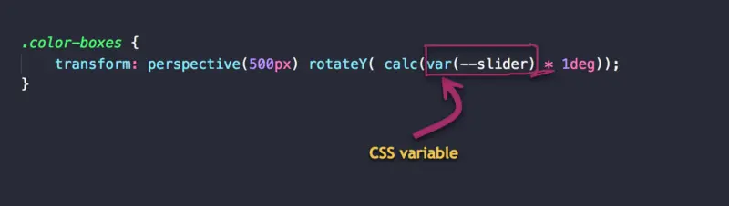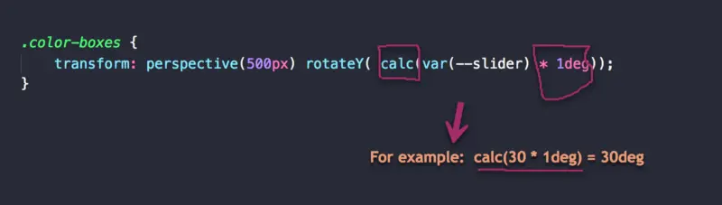 由于传入 rotateY 函数的值将被 JavaScript 更新,这个值也将通过变量来传入。