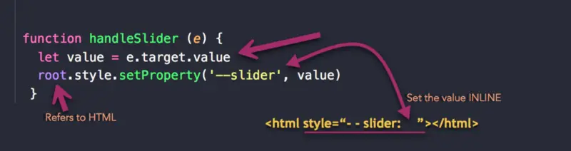 root.style.setProperty('--slider', value) 的意思是获取 root 元素(HTML),读取它的样式,并给它设置属性。