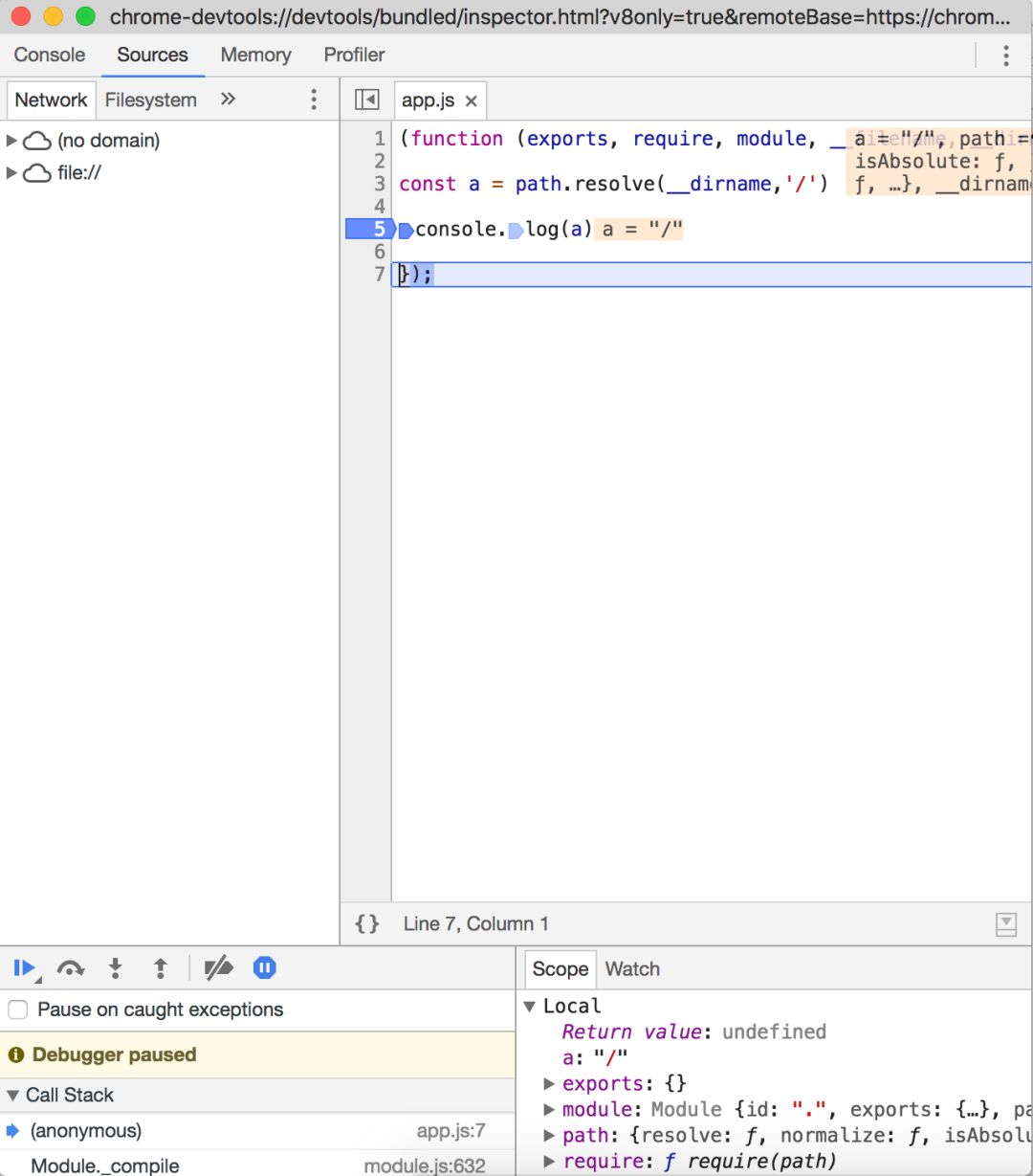 node --inspect-brk app.js