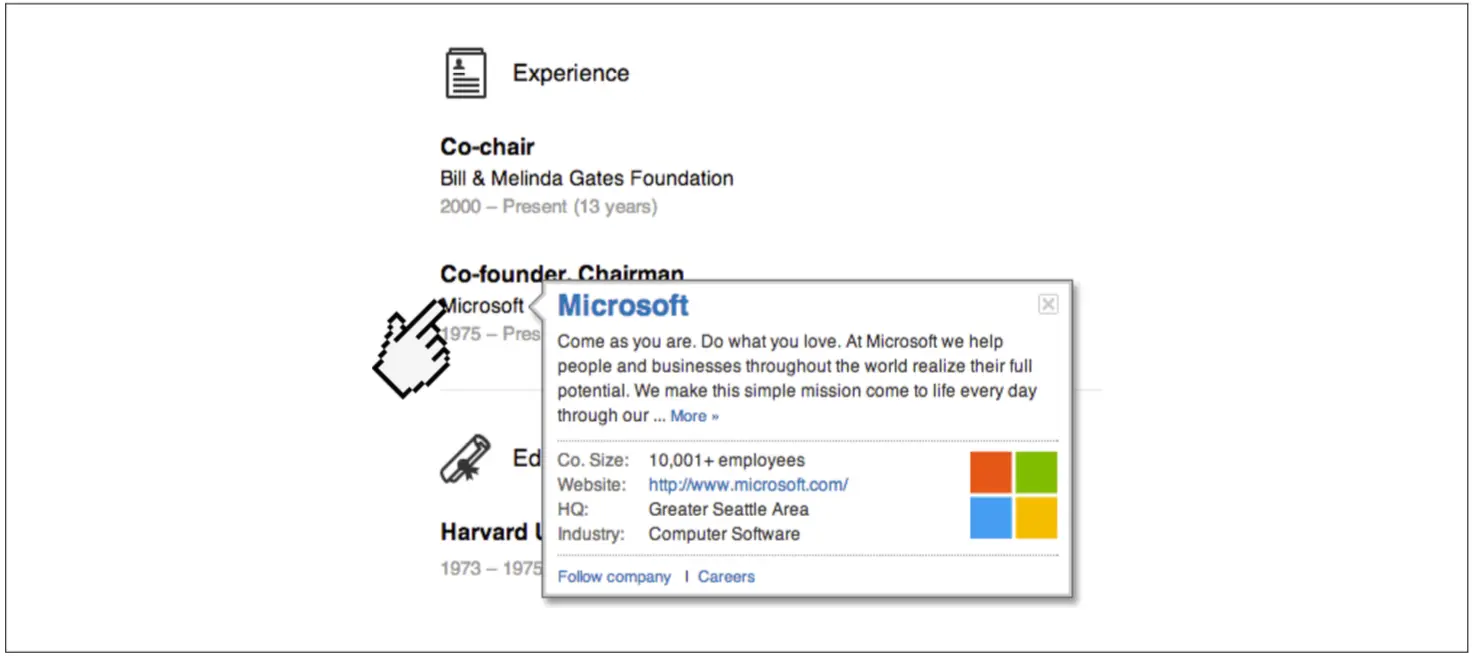 图2-3 公司名不仅是字符串,还是一个指向公司实体的连接(领英截图)