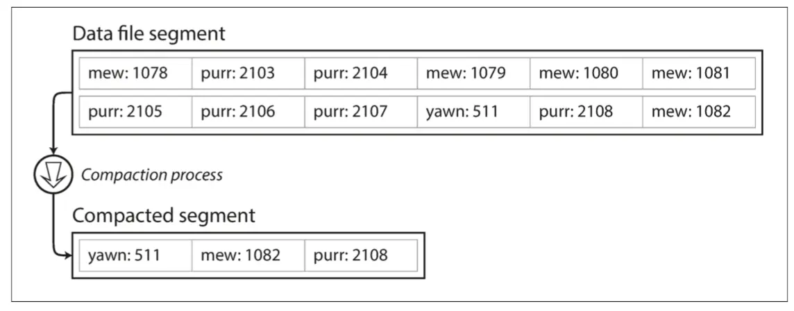 - 有时会在后台运行合并和压缩过程以组合段文件并丢弃覆盖或删除的值。