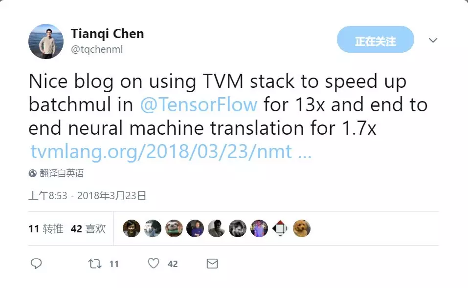 TVM 是由华盛顿大学在读博士陈天奇等人提出的深度学习自动代码生成方法,该技术能自动为大多数计算硬件生成可布署优化代码,其性能可与当前最优的供应商提供的优化计算库相比,且可以适应新型专用加速器后端。