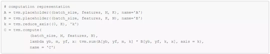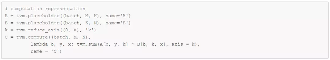 在 TVM 中,通常批量 matmul 计算可以声明为: