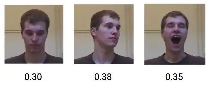 接着可以试试这个模型的效果了,我们将模拟 Face ID 的操作过程:首先注册用户面容,随后分别使用用户本人(应该能成功)以及他人的面容(应该会失败)试着解锁。正如上文所述,两种情况的差异在于,网络对解锁时以及注册时拍摄的面容计算出的距离,以及这个距离到底是低于还是高于某个阈值。