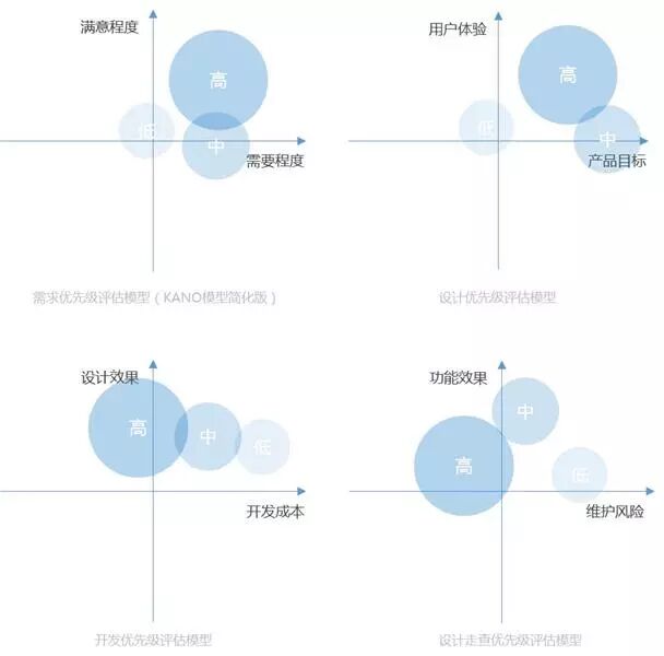 使用场景:设计阶段样式取舍、开发跟进阶段需求调整的先后顺序、应对分歧如何抓大放小,都可以借助优先级评估模型辅助评估。