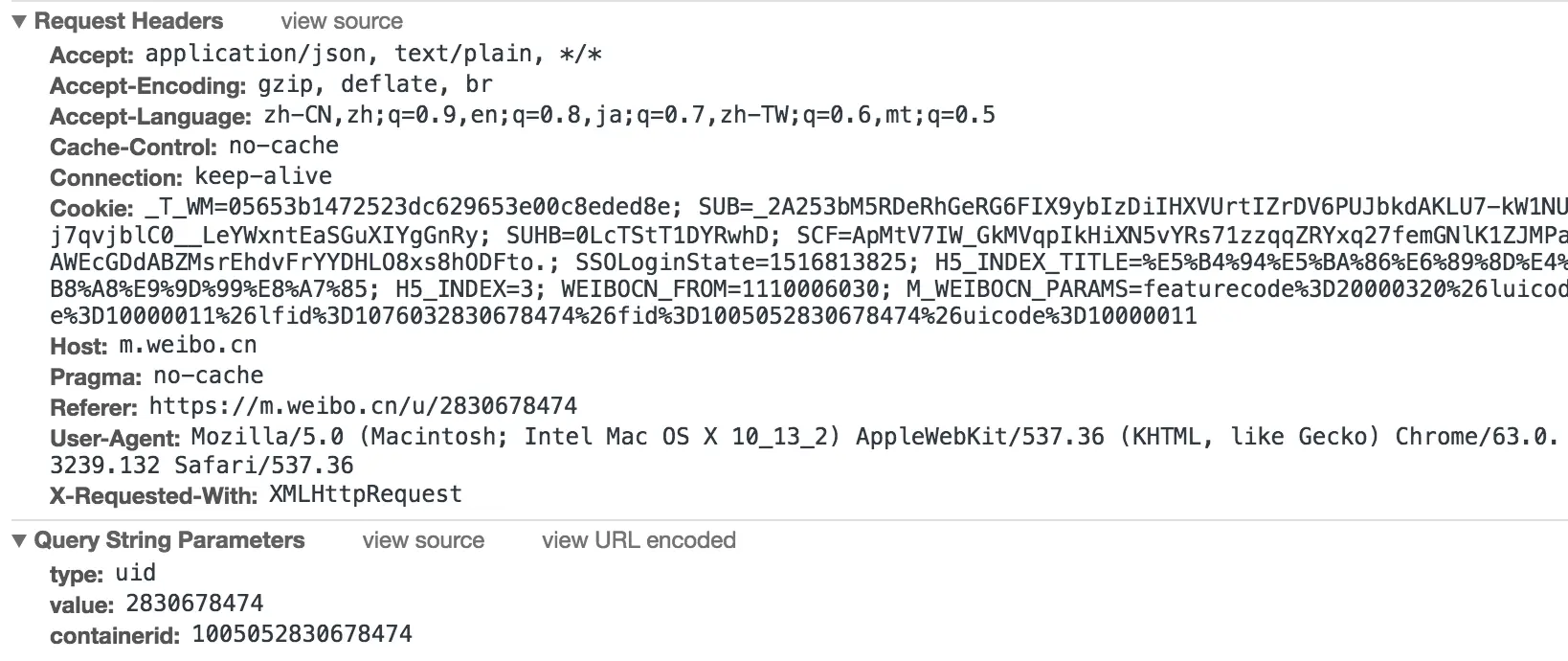 这里还以前面的微博为例,我们知道拖动刷新的内容由Ajax加载,而且页面的URL没有变化,那么应该到哪里去查看这些Ajax请求呢?