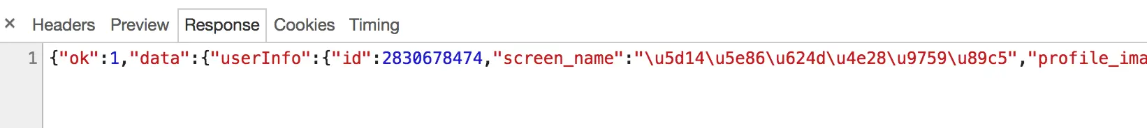 另外,也可以切换到Response选项卡,从中观察到真实的返回数据,如图6-7所示。
