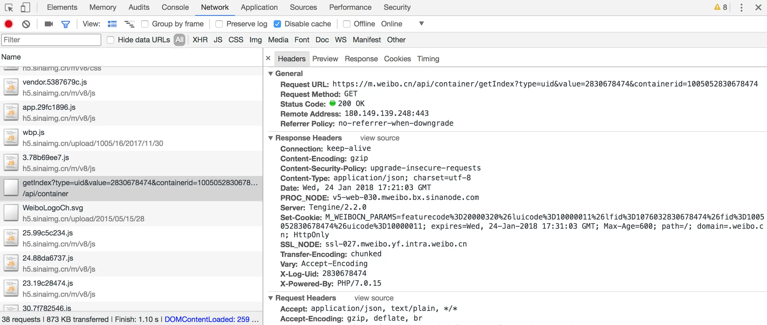 随意点开一个条目,都可以清楚地看到其Request URL、Request Headers、Response Headers、Response Body等内容,此时想要模拟请求和提取就非常简单了。
