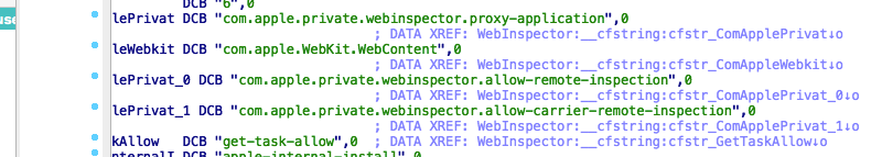 { // 特定条件下检查的是 com.apple.private.webinspector.allow-carrier-remote-inspection