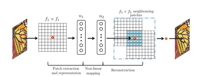 SRCNN是基于深度学习的超分辨重建领域的开山之作,继承了传统机器学习领域稀疏编码的思想,利用三层卷积层分别实现: 1. 图像的图像块抽取与稀疏字典建立;2. 图像高、低分辨率特征之间的非线性映射;3. 高分辨率图像块的重建。